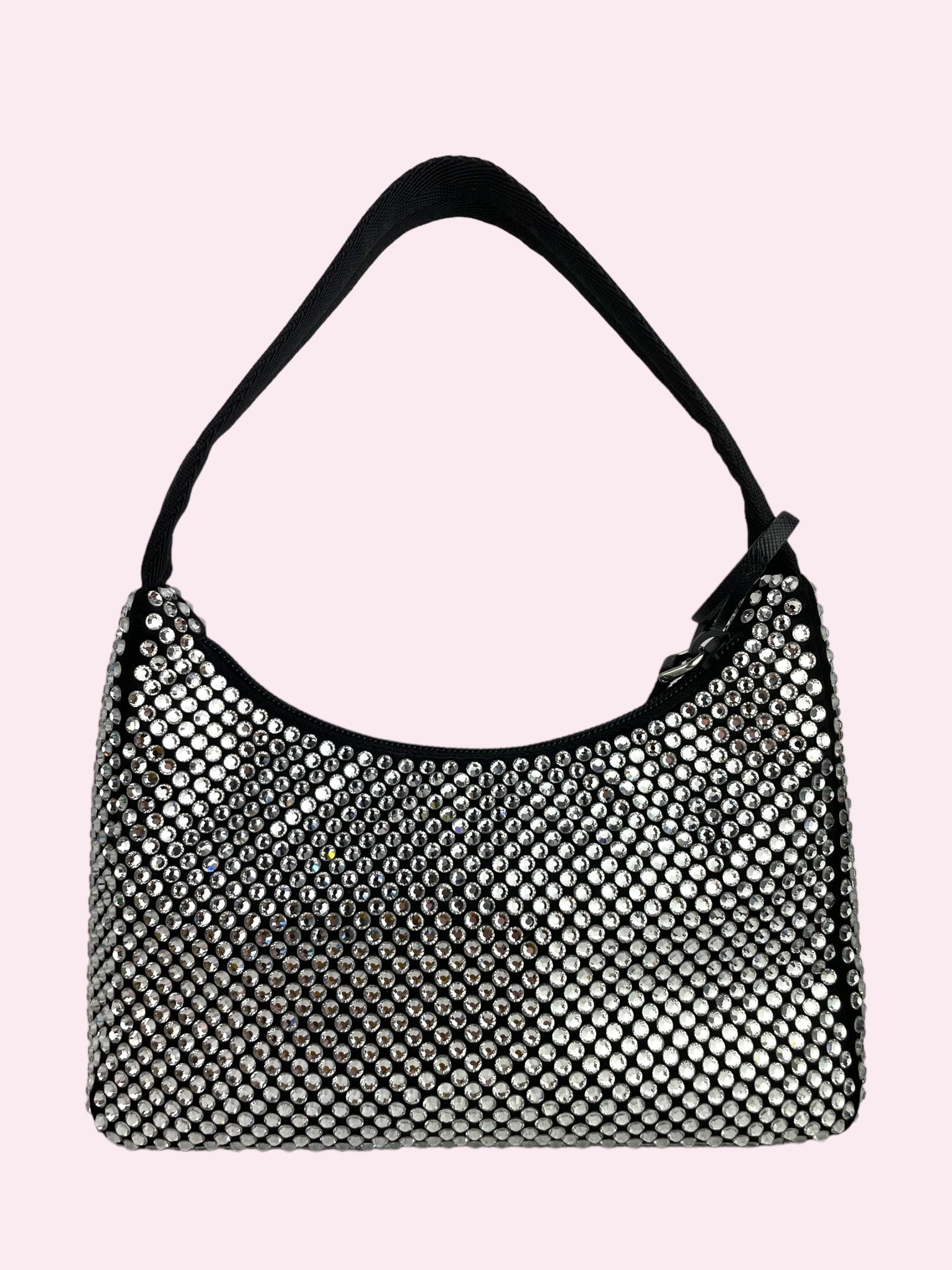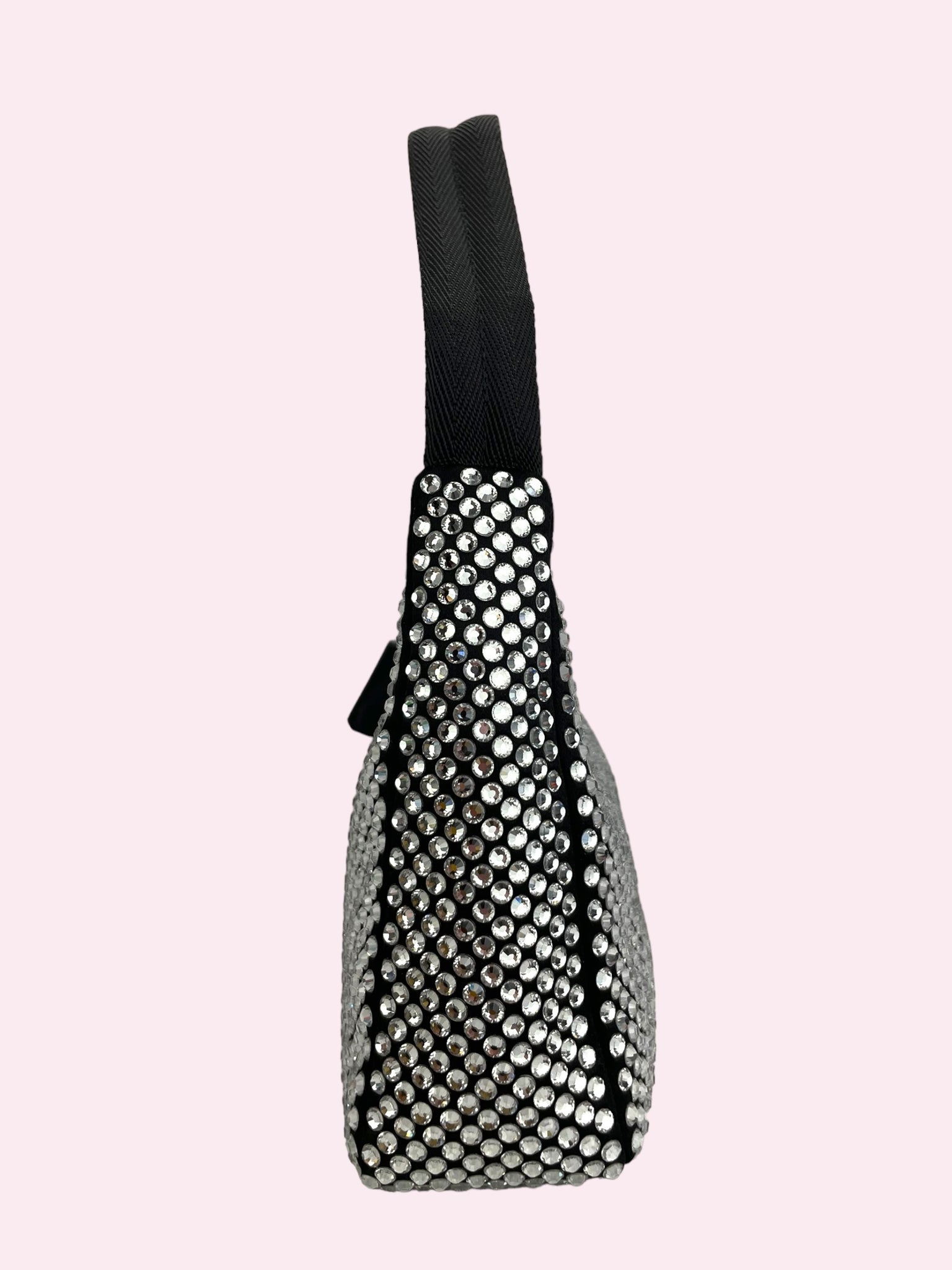IN RASO NERO CON CRISTALLI ARGENTO